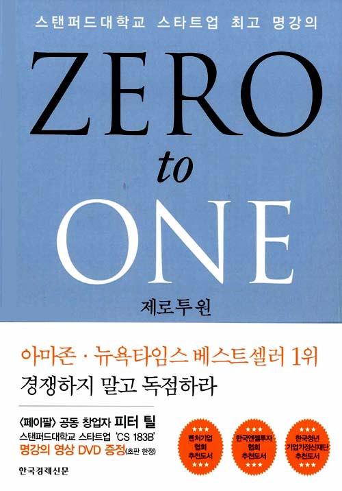 경쟁은 회사의 이윤을 0에 수렴하게 한다. 경쟁이 기업을 성장시킨다는 주장은 헛된 이데올로기에 불과하다. 회사의 이윤은 독점에서 나온다. 혁신적 창의성으로 독점기업을 만들어야 한다.