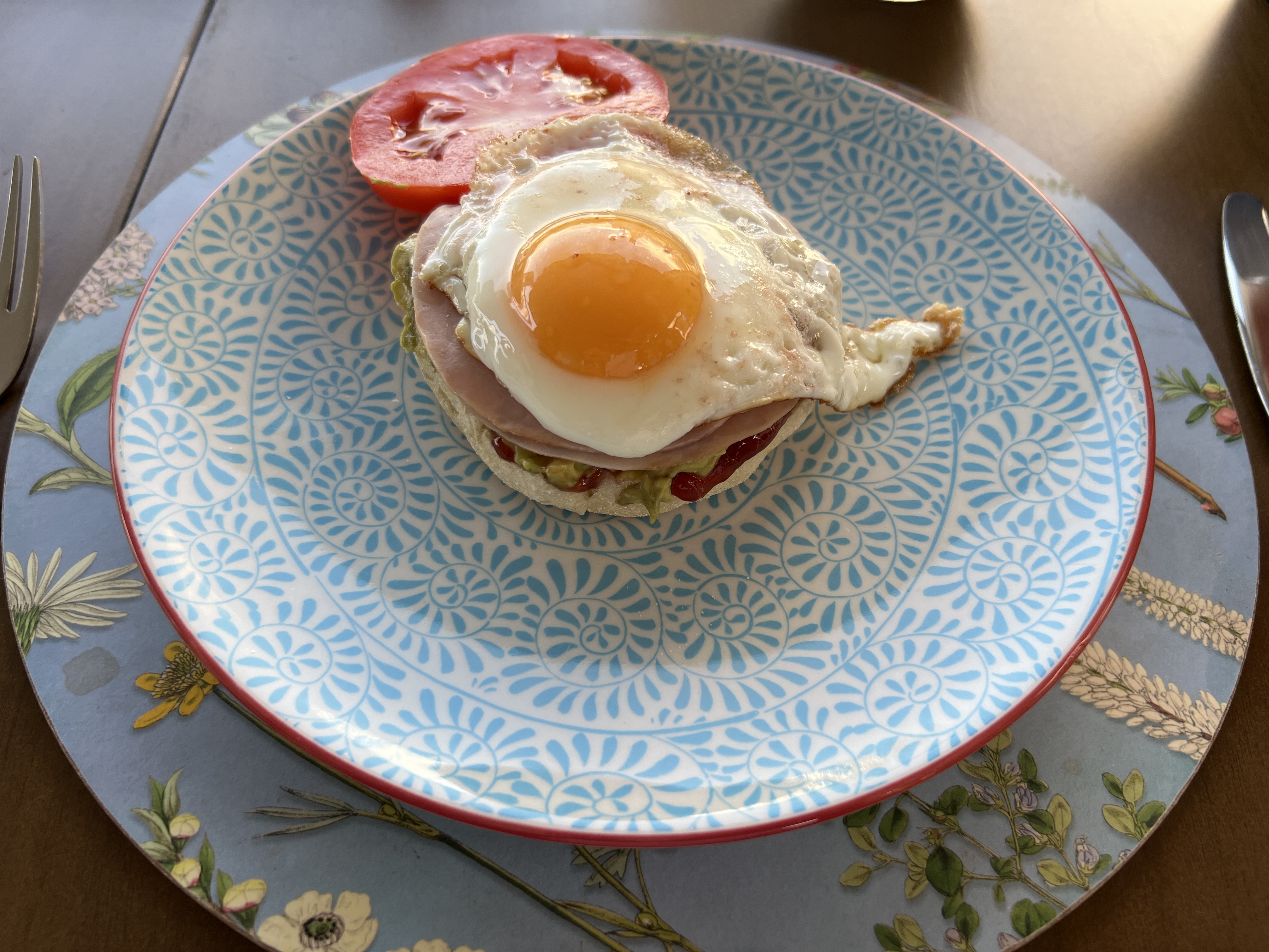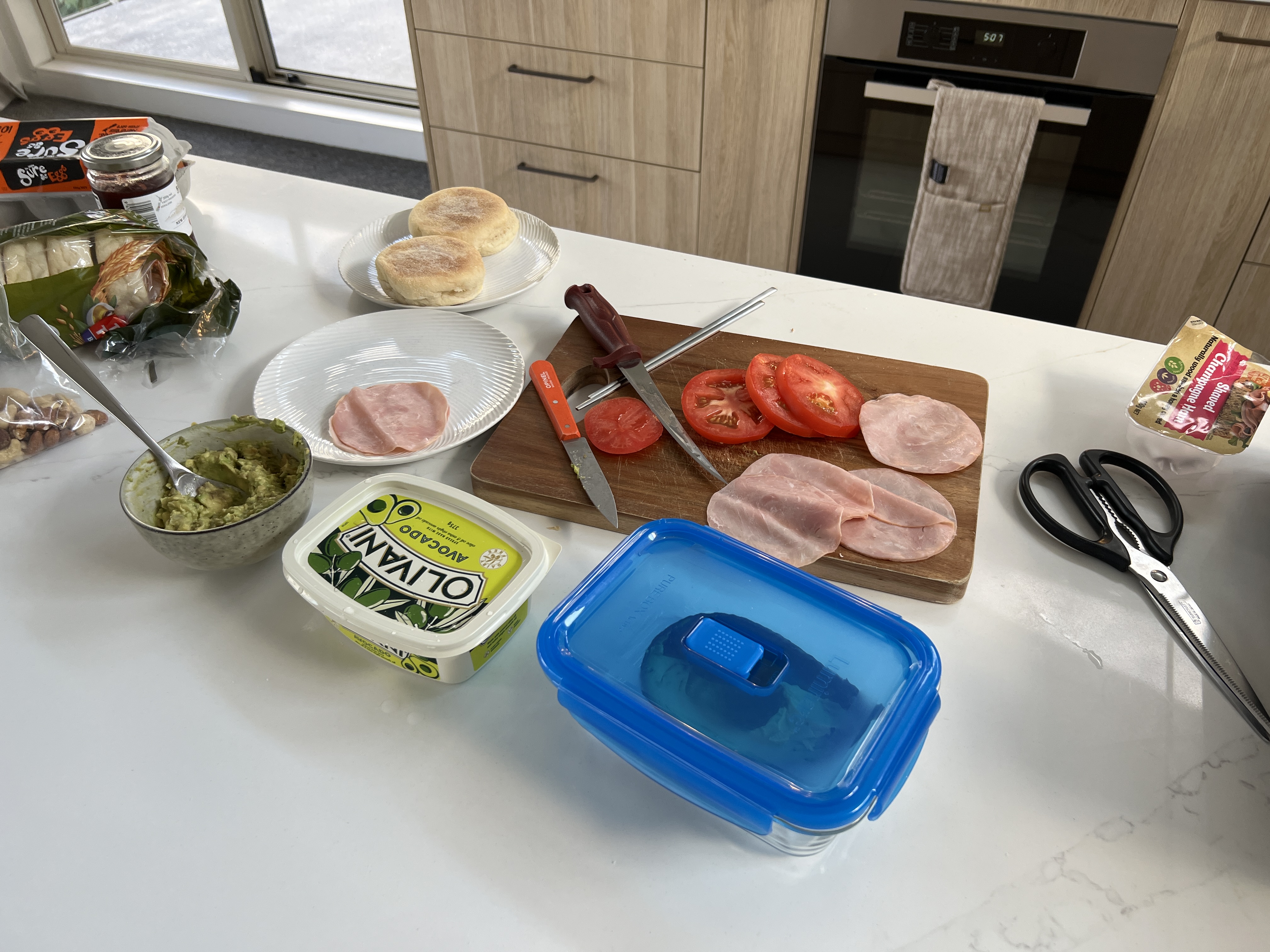 레시피를 보자면, 모닝토스트빵에 딸기잼을 바르고, 아보카도를 올리고, 슬라이스햄에, 토마토, 마지막으로 계란후라이.