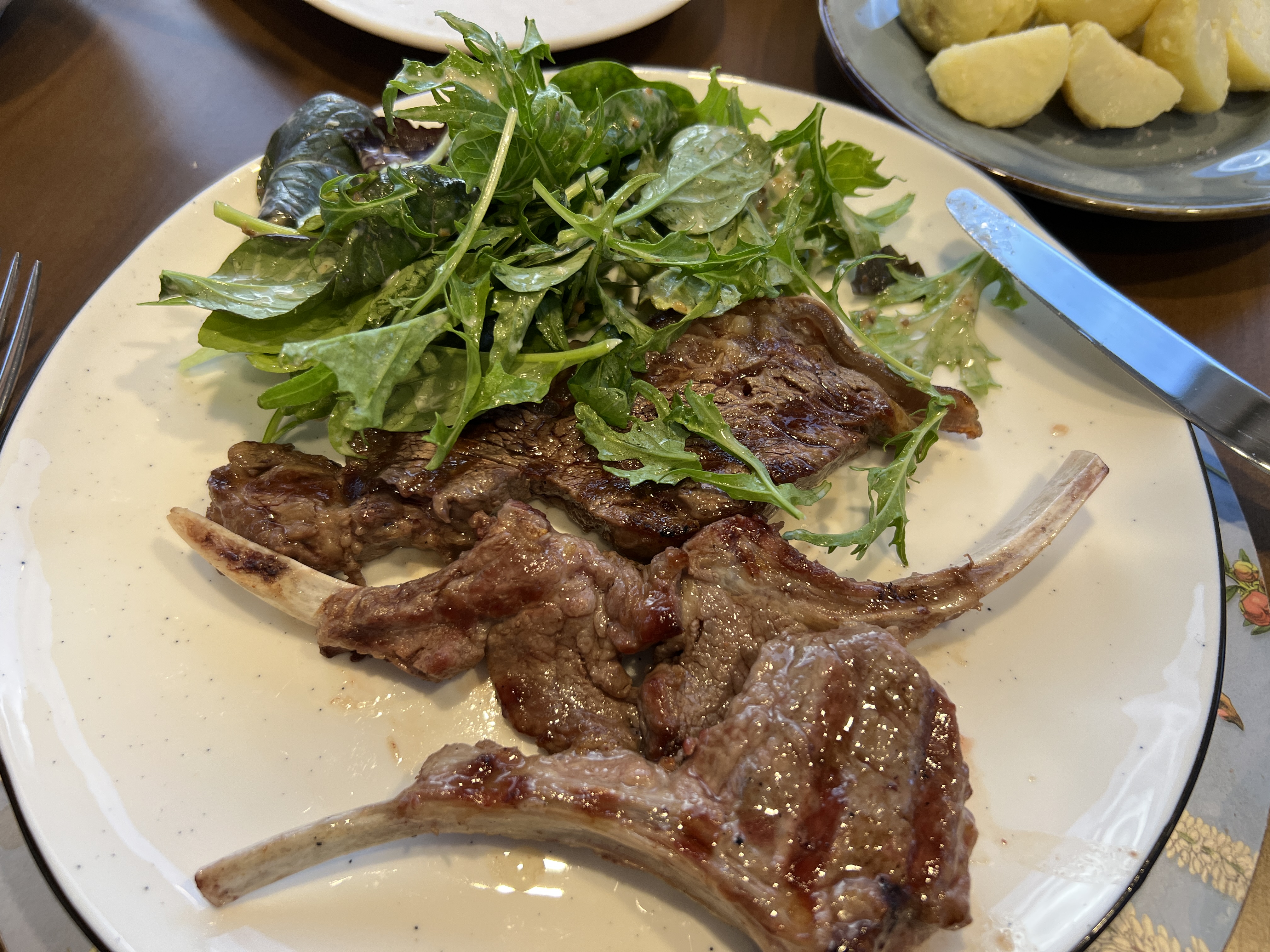 교수님께서 해 주신 양갈비와 스테이크.