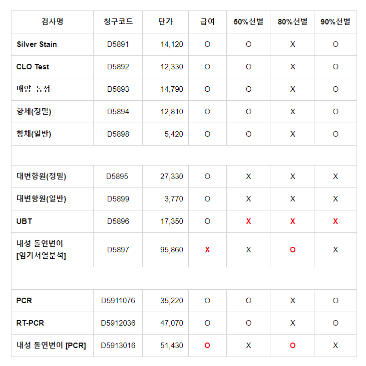 헬리코박터 검사별 급여/선별급여 여부 본문