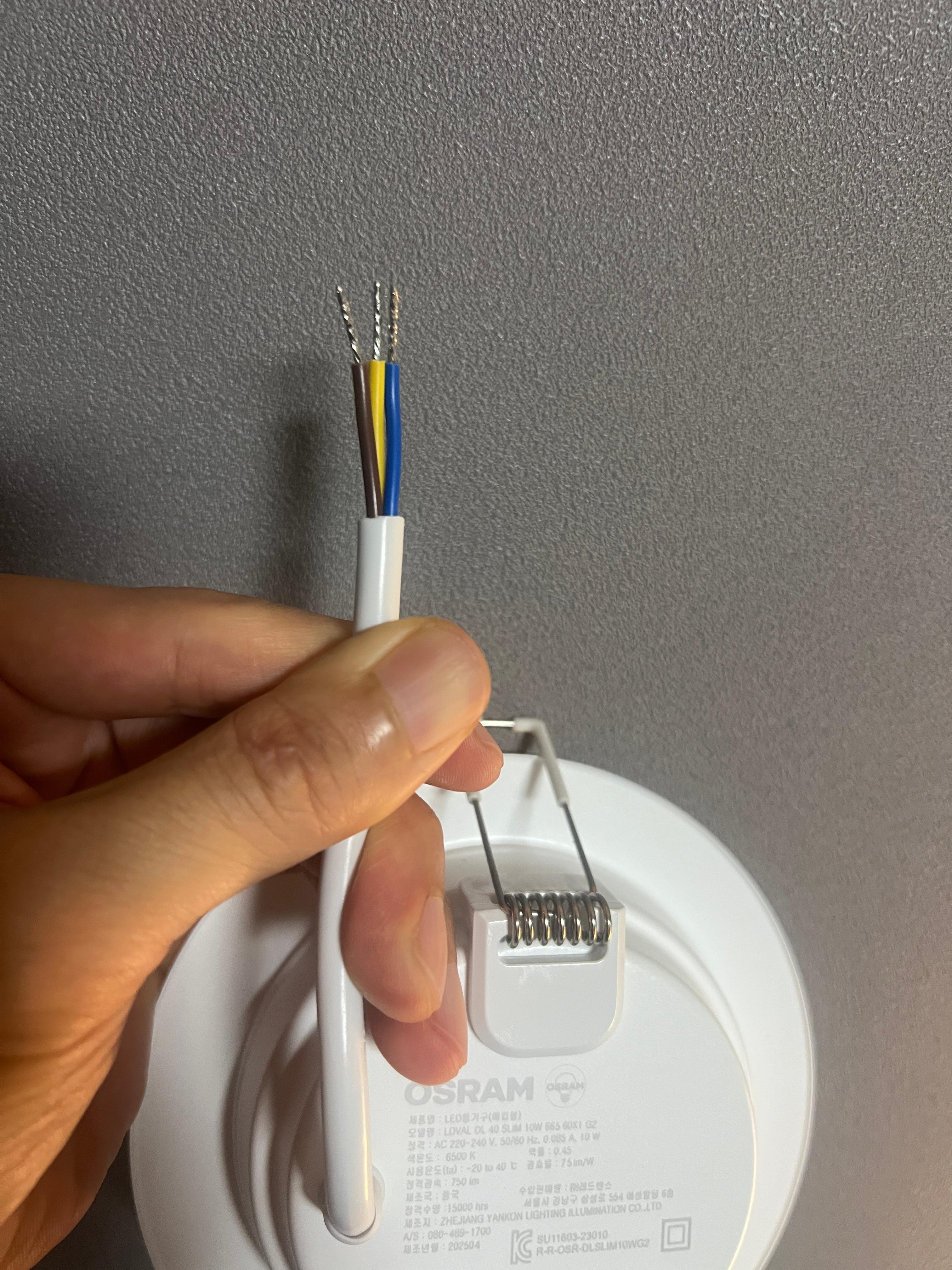 세가닥 전선 중 노란/초록 전선은 접지선.